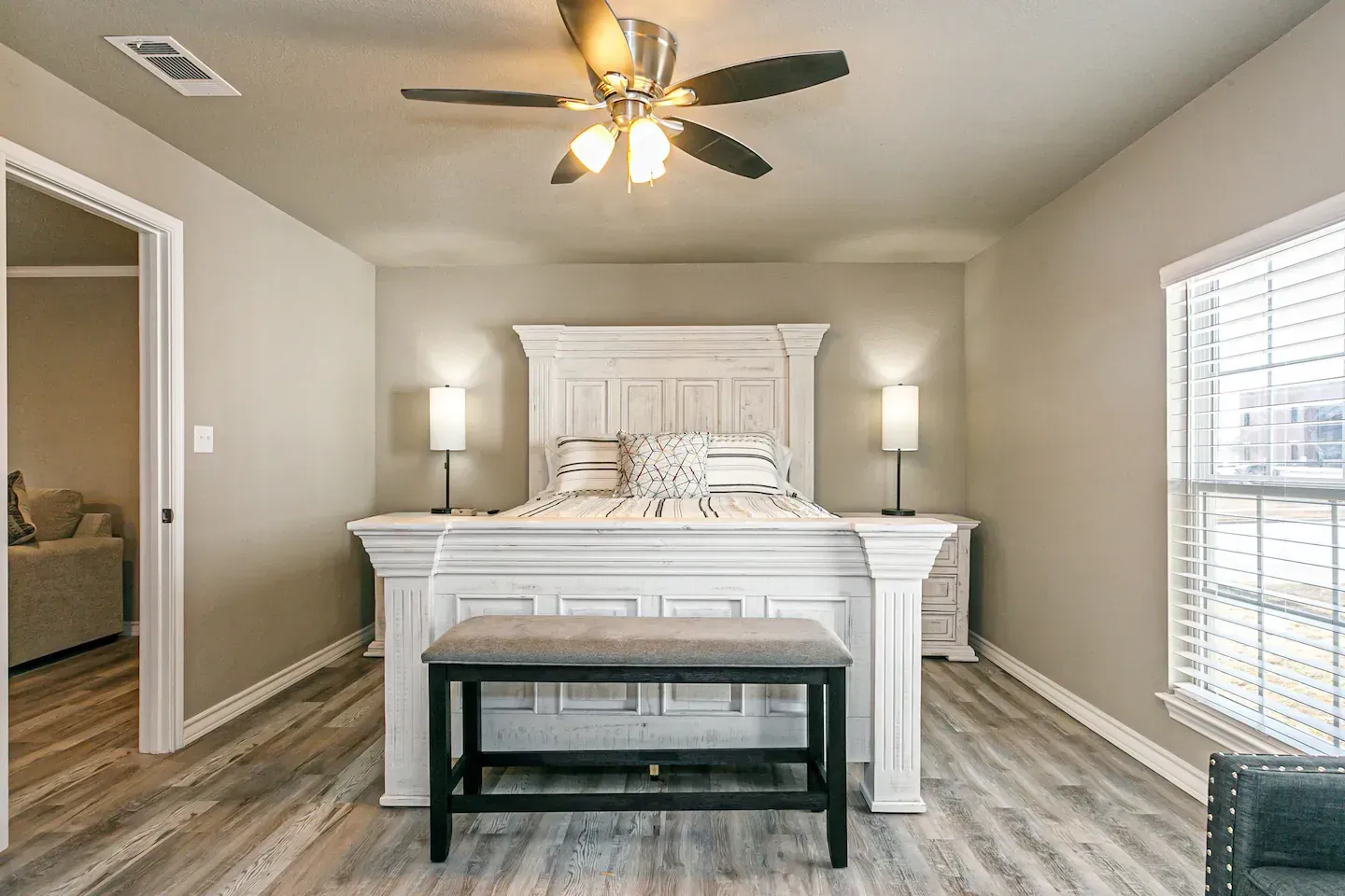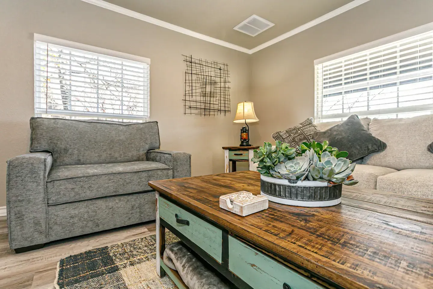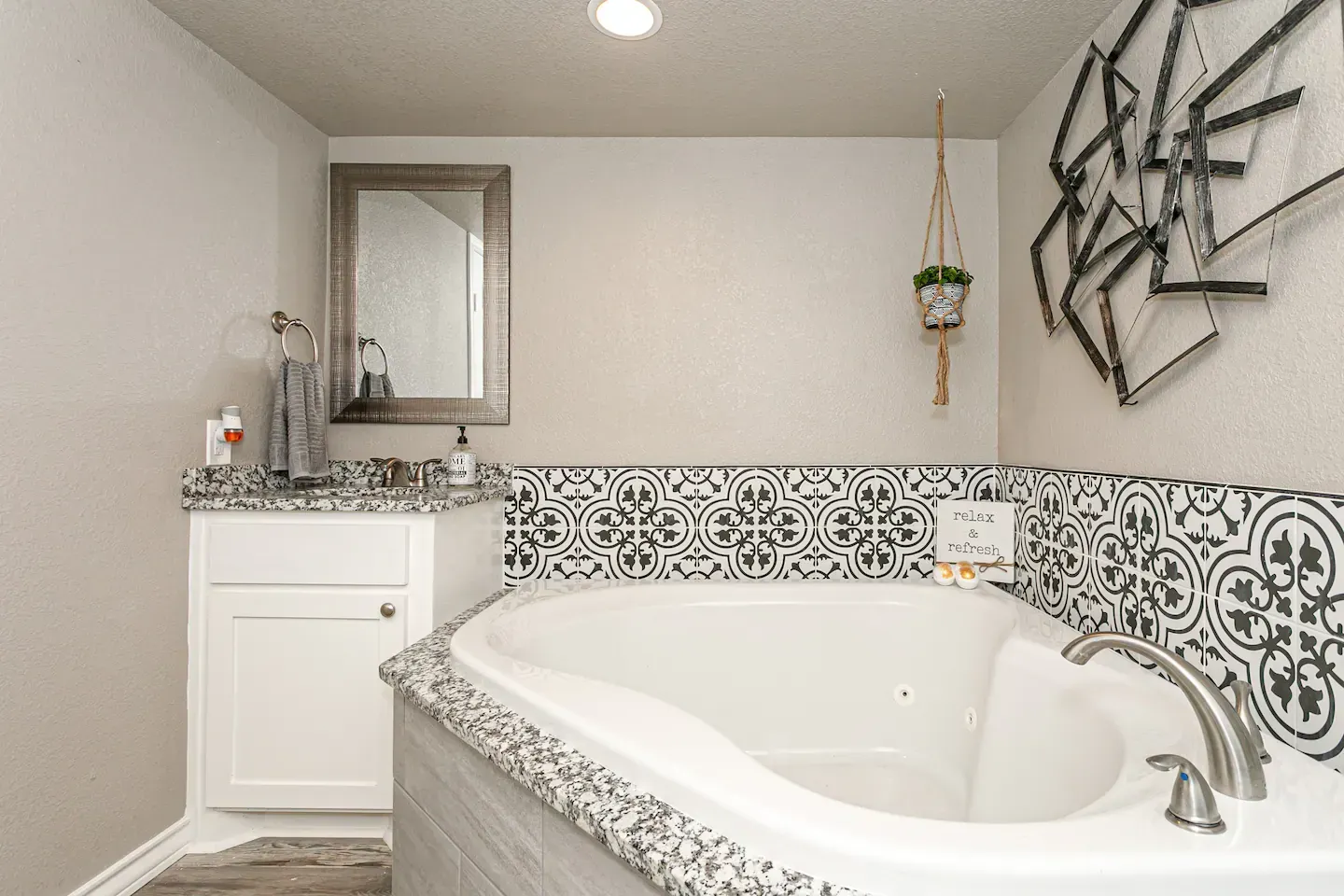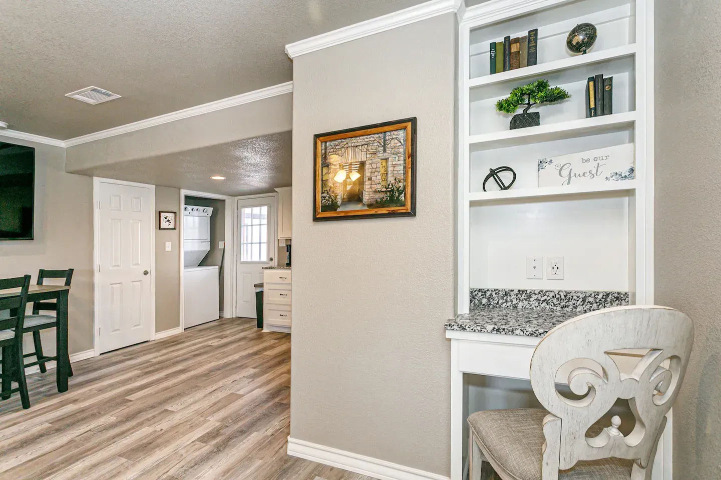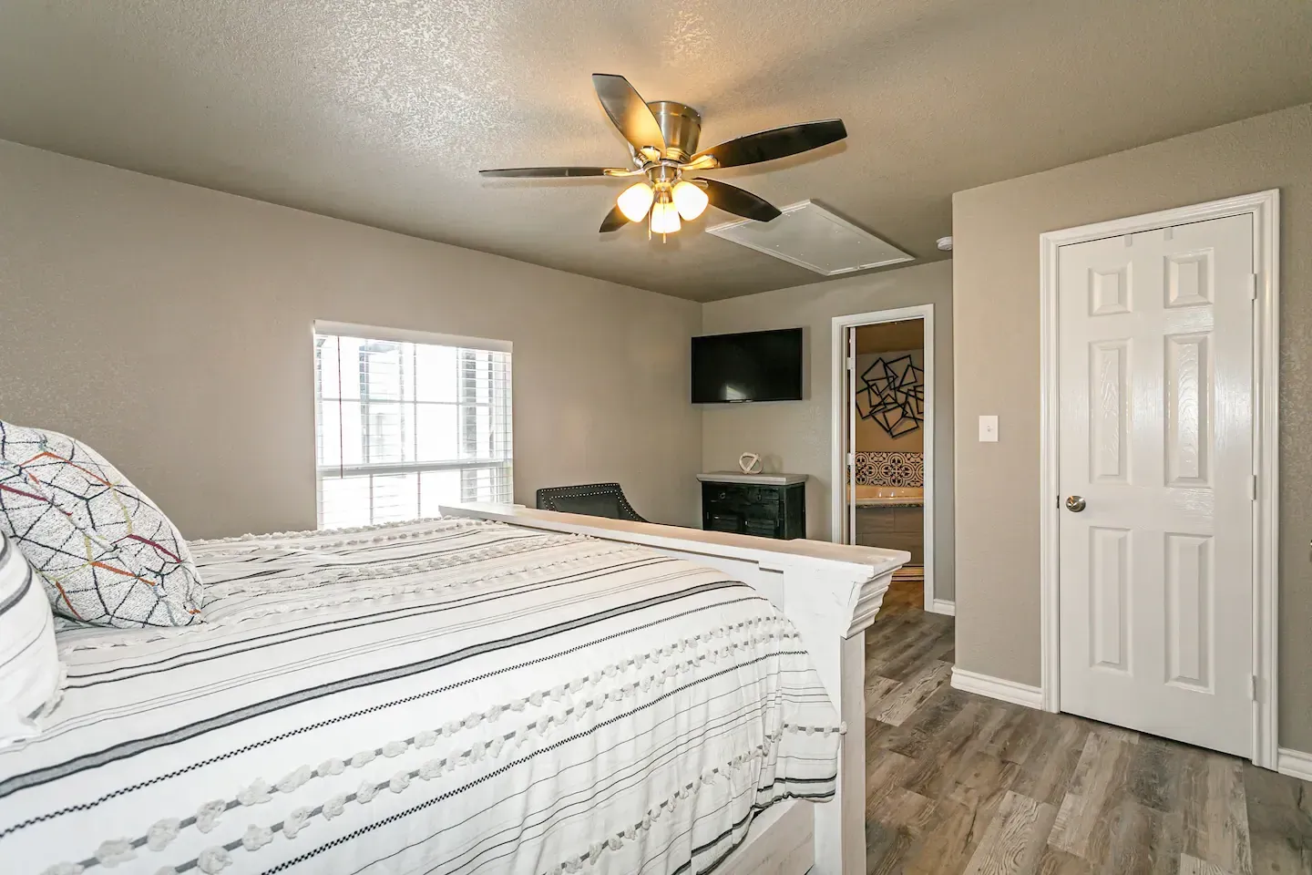 Come enjoy this newly remodeled, one bedroom cottage on the Buffalo Creek, just outside of historic downtown Cleburne. While visiting the cottage you can enjoy the new jacuzzi bathtub, complementary coffee and tea, a fully stocked kitchen, a large flatscreen TV, Wi-Fi, a designated work space, free parking, and much more! This property is nestled just a few steps off the Buffalo Creek with a quick walk to the park, downtown shopping, coffee, restaurants, and more!
