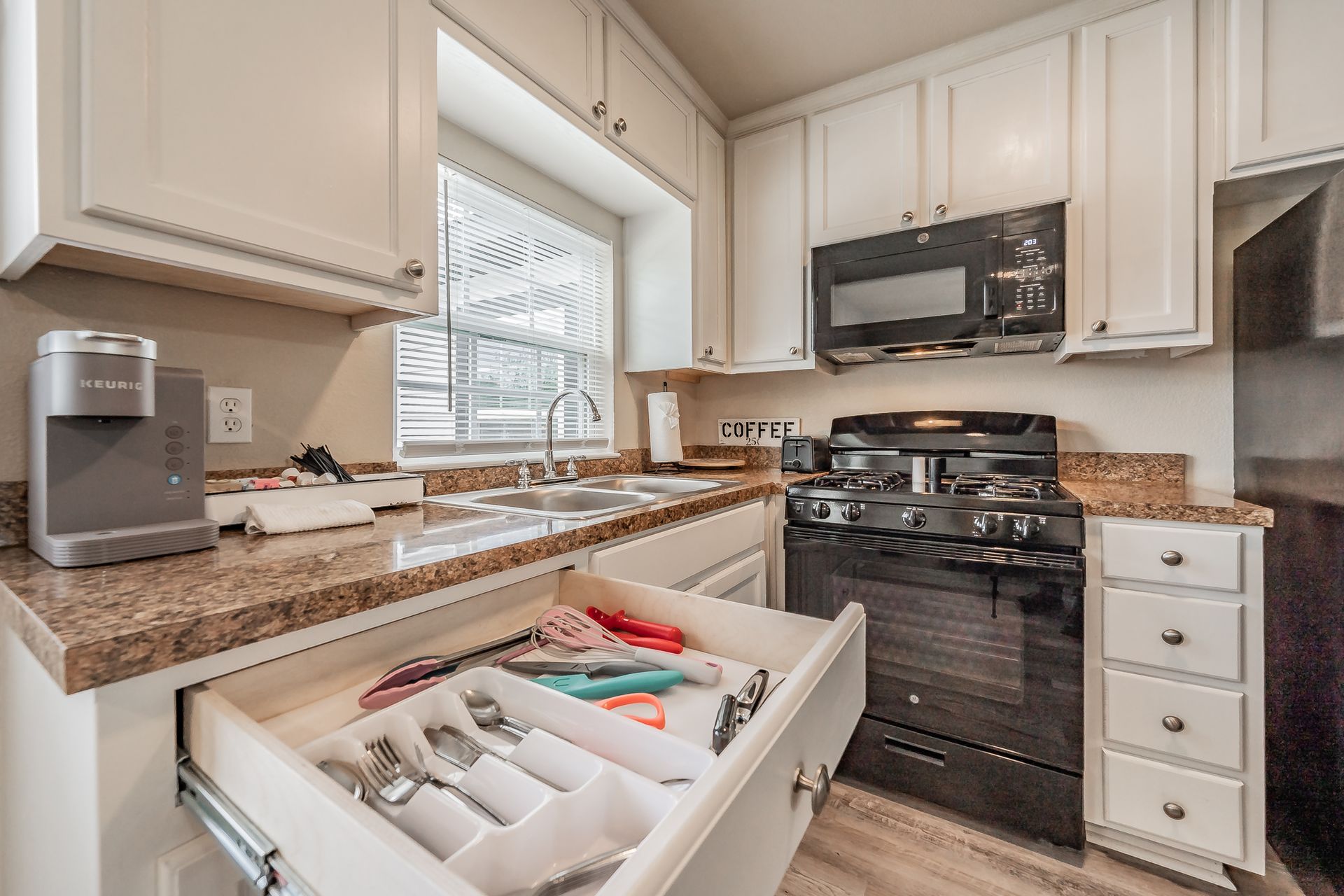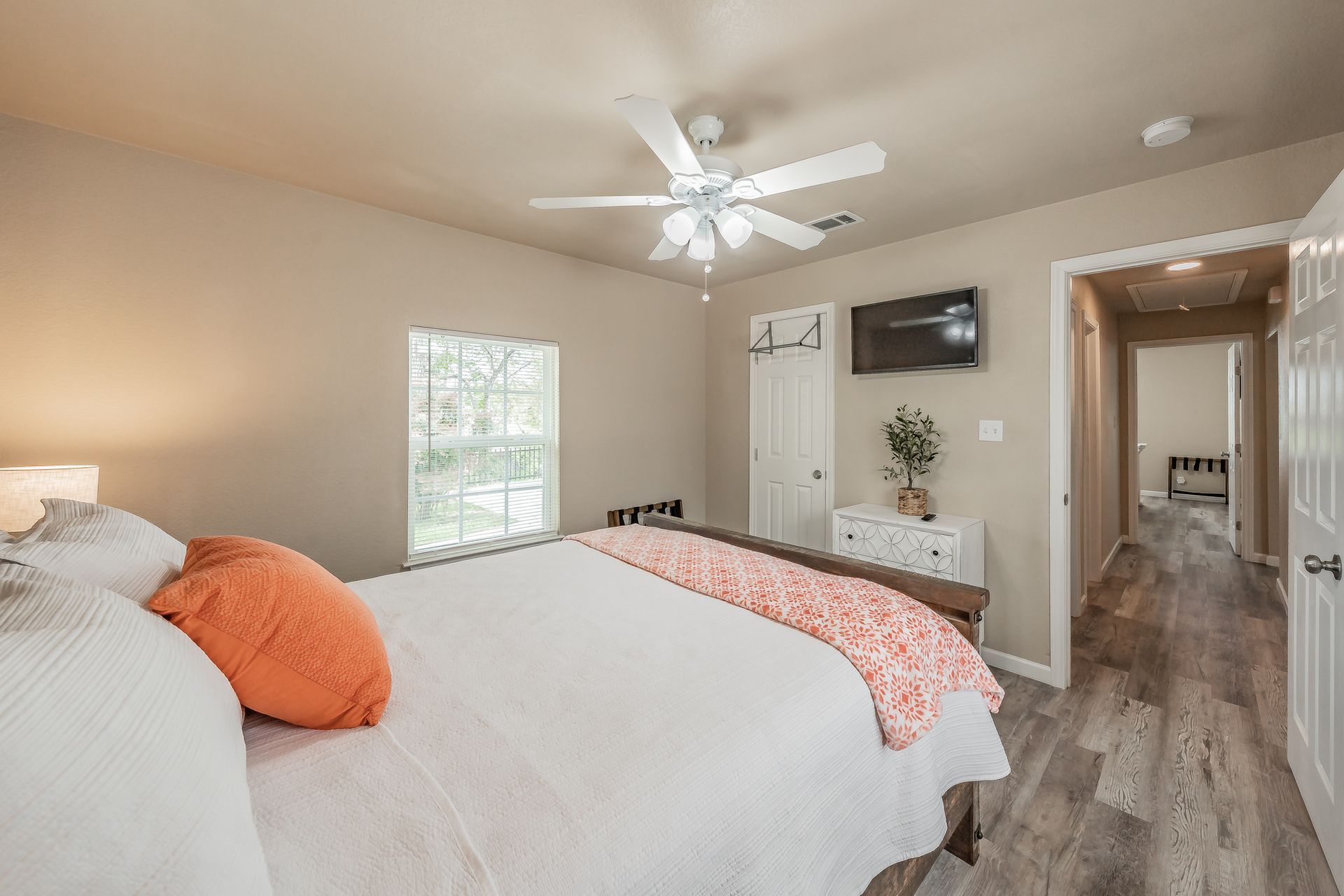 Come enjoy this adorable two bedroom duplex at The Cleburne Cottages on Buffalo Creek, just outside of historic downtown Cleburne. While visiting you can enjoy complementary coffee, a fully stocked kitchen, a large flatscreen TV, Wi-Fi, free parking, and much more! This property is nestled just a few steps off Buffalo Creek with a quick walk to downtown shopping, coffee, restaurants, and more!