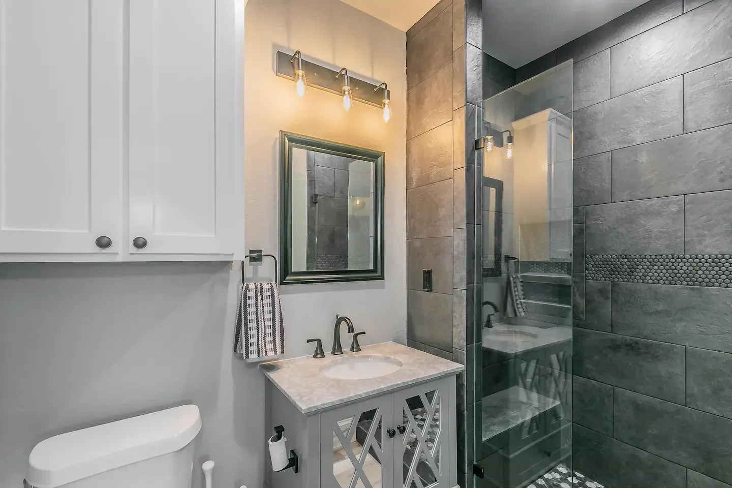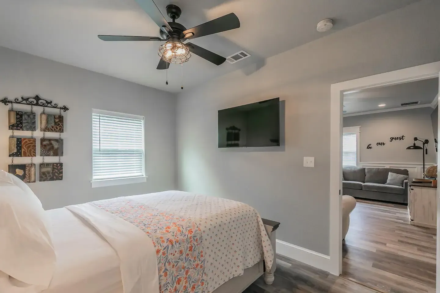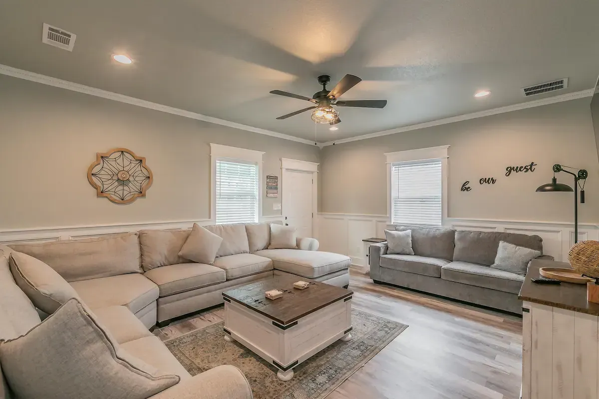 Have fun with the whole family at this recently remodeled two bedroom duplex on the Buffalo Creek, just outside of historic downtown Cleburne. While visiting you can enjoy complementary coffee and tea, a fully stocked kitchen, a large flatscreen smart TV, WIFI, free parking, and much more! This property is nestled just a few steps off the Buffalo Creek with a quick walk to the park, downtown shopping, coffee, restaurants, and more!